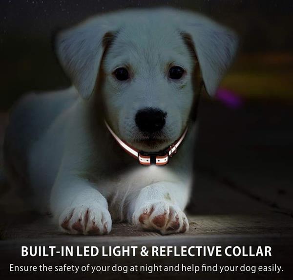 Halsband gaat van 15 tot 70cm en is reflecterend.