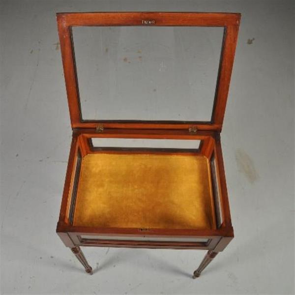 Antieke bijzettafels / Tafelvitrine in mahonie ca. 1890 met aan 5 kanten glas (No.432235)