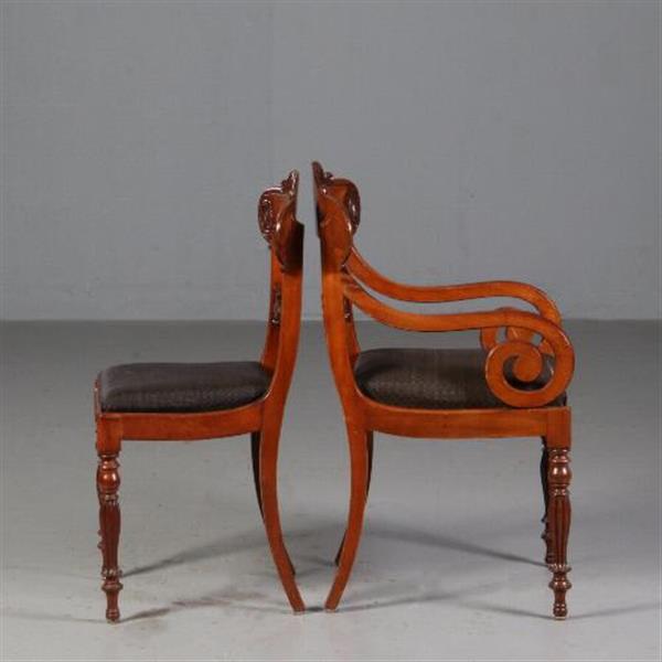 Antieke stoelen / Stel van 6 eetkamerstoelen + 1 armstoel ca. 1835 incl. bekleding naar wens (No.7
