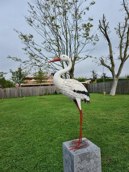 XL metalen ooievaar tuinbeeld (NIEUW) +/- 80,5x13x35cm Prachtig in de tuin en leuk als cadeau voor een zwangere vriendin Dit Xclusive Item wordt zeer goed verpakt verzonden. Bovendien wordt er breekbare tape op het pakket geplakt en is er na verzending een trackcode beschikbaar om uw pakket te volgen.