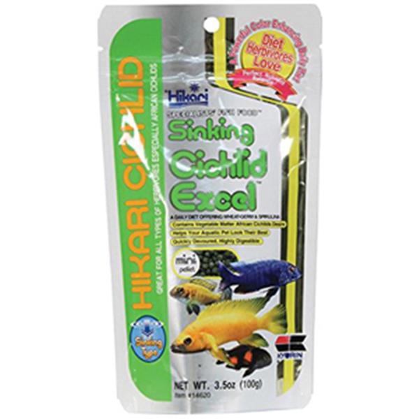 Hikari Cichlid Excel bestaat uit het gemakkelijk verteerbare wheat-germ en zuiver gekweekte spirulina. Dit zorgt voor een snelle ontwikkeling van levendige en krachtige kleuren. Dit eiwitarme voer is precies wat herbivore cichliden nodig hebben. Het bevat extra vitamines C en E en is rijk aan linolzuren wat zorgt voor gezonde organen, een gezond immuunsysteem en betere voortplanting. Hikari Cichlid Excel is verkrijgbaar als drijvende mini en medium korrel voor de grotere herbivore cichliden en als zinkende mini korrel voor vissen die liever op de bodem van het aquarium eten.