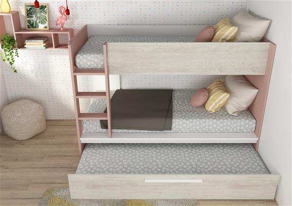 Stapelbed Jules (met extra slaaplade) in oudroze/antique pink