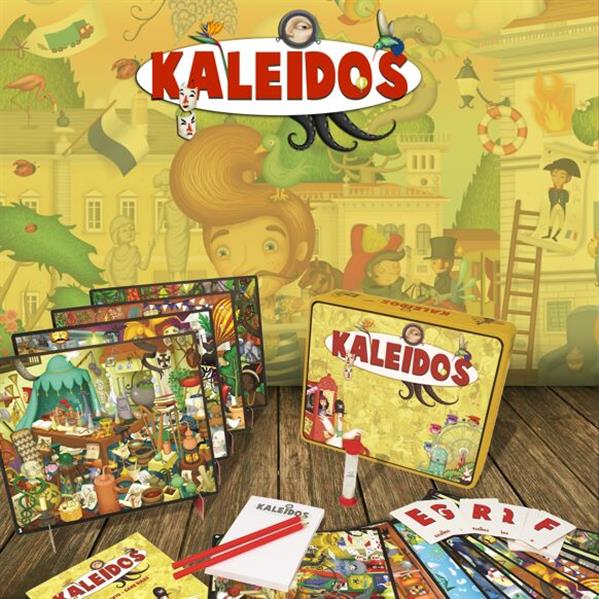 Kaleidos werd voor het eerst gepubliceerd in 1995 en won talloze internationale prijzen. Het is nog steeds een echte bestseller in heel Europa. De regels kunnen in een paar minuten worden uitgelegd en het kan ook door veel deelnemers worden gespeeld, individueel of verdeeld in teams. Dankzij deze functies is Kaleidos het perfecte "partyspel" dat geschikt is voor elke avond met vrienden, zelfs voor degenen die geen grote fan zijn van games. Het basisidee is heel eenvoudig: schrijf zoveel mogelijk woorden waarvan de beginletter overeenkomt met de letter die willekeurig is gekozen aan het begin van de spelronde en die op de een of andere manier "zichtbaar" zijn in de geselecteerde geïllustreerde tabel. Na de tijd die is gemarkeerd door de zandloper, vergelijkt elke speler zijn woorden met die van de anderen. Elk woord dat door meerdere spelers wordt gedeeld, is één punt waard voor elk, maar unieke woorden zijn drie punten waard! In tegenstelling tot de meeste woordspellen is er geen geldige woordenlijst in Kaleidos en moeten de spelers zelf met een meerderheid stemmen of ze die van anderen goedkeuren of niet. Hier begint het echte plezier, want je moet de meer surrealistische kunnen rechtvaardigen, en je tegenstanders ervan overtuigen om je de drie punten te geven! Kaleidos is prachtig geïllustreerd door de Italiaanse kunstenaar Elena Prette, is speelbaar in elke taal en kan ook een waardevol hulpmiddel zijn om je woordenschat te verrijken. De elegante metalen doos en de rijkdom van de inhoud maken het een perfect cadeau.