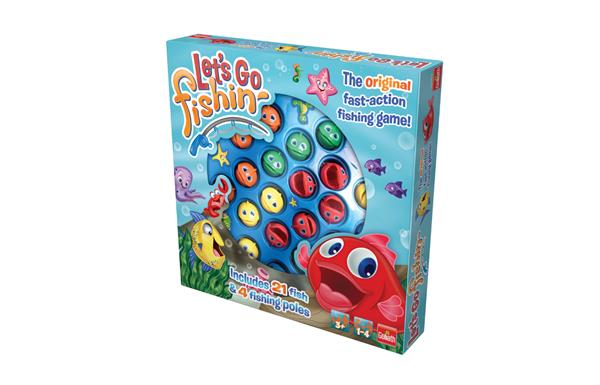 Let’s Go Fishing is een speelgoedklassieker die kinderen van alle leeftijden nog steeds aanspreekt. Het spel bevat vier kleurrijke en stevige vishengels en wordt geleverd met 21 kleurrijke vissen die rondzwemmen in een kleine vijver. Spelregels: Het doel van Let's Go Fishing is erg simpel, verzamel zo veel mogelijk vissen. Elke speler kiest een vishengel uit, de schakelaar wordt aangezet en het spelplatform zal gaan draaien. Nu moeten alle spelers tegelijkertijd zo veel mogelijk vissen proberen te vangen, slechts 1 vis per keer! Nadat alle vissen zijn gevangen telt elke speler de vissen die hij of zij heeft gevangen. De speler met de meeste vissen wint.