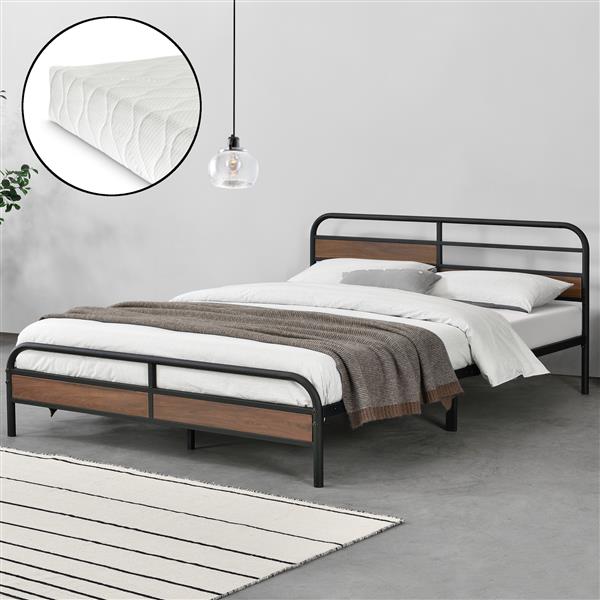 Metalen bed Aarau bedframe matras zwart walnoot 180x200