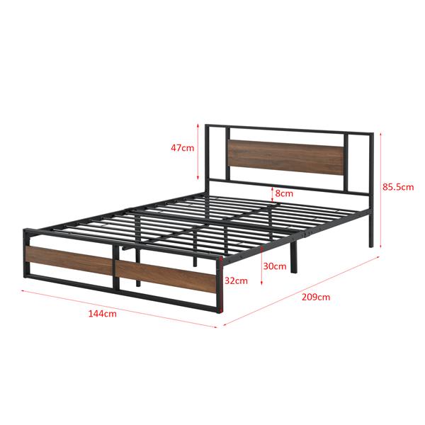 - Metalen bed Villach bedframe 140x200 cm zwart en walnoot