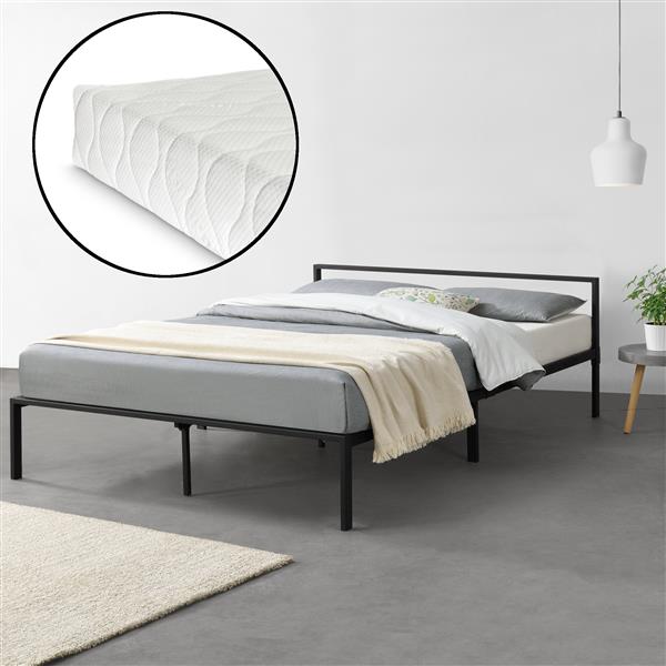 - Metalen bed Zeus met bedbodem en matras 140x200 cm zwart