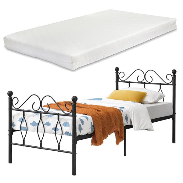 Metalen bedframe Apolda met matras en metalen bedbodem zwart
