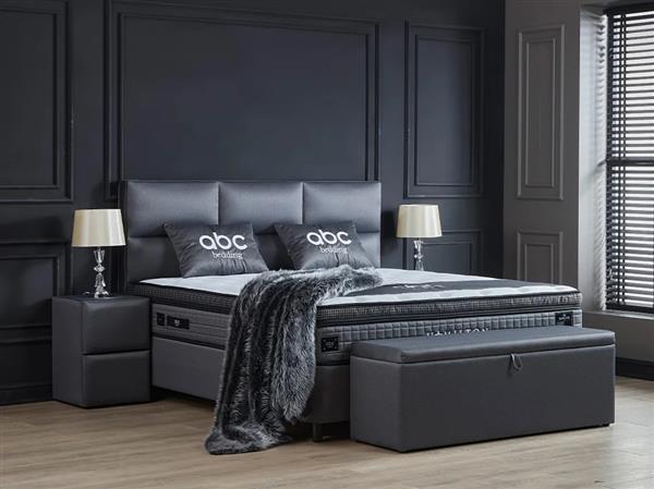 Deze slimme uitvinding is de laatste trend op slaapkamergebied. Deze boxspring heeft een moderne en robuuste uitstraling met opbergruimte, uitgevoerd in een mooi design de kleur grijs.
