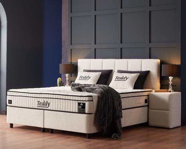 Deze boxspring zal luxe en comfort in uw slaapkamer brengen. Het design is geïnspireerd op invloeden uit de mode wereld. Het luxe hoofdbord geeft uw slaapkamer een eigentijdse look. Ook is deze opbergboxspring is bekleed met een super mooie en luxe stof. Met deze opbergboxspring maakt u optimaal gebruik van de ruimte in uw slaap kamer. Door de handige opbergruimte die zich onder het gehele oppervlakte van het matras bevind kunt u bijna alle gewenste spullen op een nette en handige manier opruimen. Het hoofdbord is gestoffeerd in een luxe Teddy stof. Het matras sluit helemaal aan op de stijl van de boxspring. Ook kunt u verschillende extra opties toevoegen aan deze prachtige boxspring. Denk hierbij aan een voetbord in de style van het hoofdbord om de boxspring net dat beetje extra te geven, Bijvoorbeeld nachtkastjes is de zelfde style als de boxspring of een dekenkist voor net wat extra opbergruimte. Na het samenstellen van de Boxspring ontvangt u: • 1x luxe gestoffeerd Hoofdbord. • 2x Opbergboxen • 12x zwarte poten. • 1x Matras met afritsbare topper. Leverbaar in verschillende breedte maten