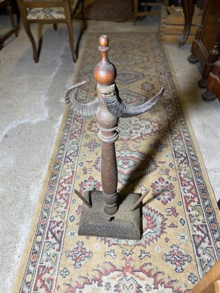 Te koop is een oud beeld versierd met hoorns. Het beeld is geheel origineel. Het wordt gekenmerkt door een massieve houtstructuur. Je kunt hem gebruiken als voetstuk of tafelstructuur. Zeldzaam en uniek in zijn soort. Het is in uitstekende staat, moet alleen even worden afgestoft. Verzending beschikbaar.