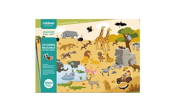 Meer dan 200 elektrostatische, herbruikbare stickers in verschillende thema's (bos, boerderij, wilde dieren en bos).