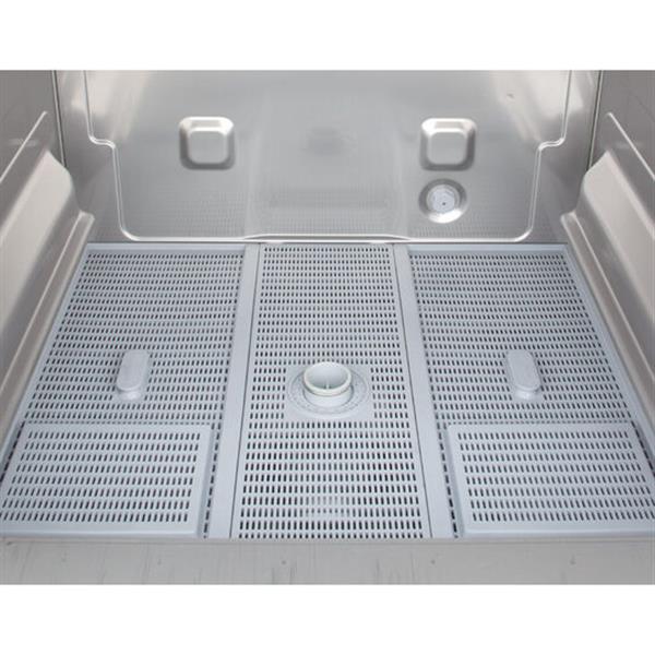 Borden laadhoogte Ø 365 mm (hoogte glazen 325 mm). Van 30 tot 20 manden/uur; PLD cyclus 120'', 180'', doorlopend en ''Sanitisation''. 3 fases : wassen, afvoer, spoelen. Standaard afvoerpomp. Standaard spoelpomp (atmosferische boiler). Volledig vervaardigd uit roestvrij staal AISI 304. Roterende was- en spoelarmen (boven- en onderzijde) (gemaakt van composietmateriaal). Zelfreinigende sproeiers. Kuip (20 lt - 2,1 kW) met afgeronde hoeken, "diepgetrokken" bodem. Gestempelde korfgeleiders, geen ruwheid en geen kalkaanslag. Geïntegreerd" kuipfilter (gemaakt van composietmateriaal). Gepatenteerd" pomp filter om het waswater langer en op de juiste temperatuur te houden. Dubbelwandige diepgetrokken deur, afneembare deurafdichting, diepgetrokken handgreep. Verstelbare cilinders. Afneembaar bedieningspaneel voor eenvoudig onderhoud. Automatische waterafvoer functie geïntegreerd in het bedieningspaneel (het is niet nodig om de dop handmatig te verwijderen). Automatische kuipvulling. Terugslagklep. Warm water spoelen (waterverbruik per cyclus 2,4 liter), roestvrijstalen ketel (6 lt - 4,9 kW). Mogelijkheid om de temperatuur van de kuip en de boiler te regelen. Hoogrendement waspomp (dubbele stroom) die een aanzienlijke energiebesparing garandeert. Microschakelaar om de cyclus te stoppen als de deur wordt geopend. Veiligheidsthermostaat. Inbegrepen: 2 manden, 1 bestekbeker, wateraansluiting en afvoerslangen. PLUS: "Peristaltische" doseerder van spoelmiddel en "peristaltische" doseerder van vloeibaar wasmiddel als standaard toebehoren. CSD digitaal bedieningspaneel (soft touch). EED energiebesparing. TCD controlethermostaat voor een gewaarborgde spoeling op 85°C. DRD versnelde voorverwarmcyclus. DID auto diagnose bij onregelmatigheden. ADD weergave temperatuur kuip en boiler (HACCP normen). DDD gedeeltelijke leegmaken van de kuip, lediging via de bodem van de kuip. CID zelfsluitende deur "soft contact" (gedeeltelijke opening voor het verwijderen van de stoom). RGD Spoeling aan constante temperatuur, stabiele druk. BTD "Break Tank", voorziening tegen de vervuiling type AB. CAD zelfreinigingscyclus (100% automatisch). NB: alle machines worden gegarandeerd voor gebruik met een osmose wateraansluiting. VOORDEEL - SANITISATION: Dit nieuwe hygiëneprogramma biedt een extra garantie dankzij een thermische ontsmettingsfase waarbij de vaat op een temperatuur van meer dan 70°C wordt gebracht en voldoende lang blijft staan om een dodelijke index A0 te bereiken die gelijk is aan 30, berekend op basis van de sanitaire norm EN 15883. Deze norm garandeert de vernietiging van ziektekiemen en bacteriën,..... Het niveau van hygiëne dat met deze cyclus wordt bereikt is dus veel hoger dan wat een traditionele wascyclus kan bieden. VOORDEEL - BREAK TANK: De "break tank" is een "anti-vervuiling" type AB (Britse normen) apparaat 1) Het voorkomt dat het water in het reservoir (met afwasmiddel) kan terugvloeien naar het distributiesysteem. 2) Tijdens de duurtijd van het spoelen wordt een constante druk gegarandeerd door de pomp, de hygiëne en het drogen wordt verzekerd tot en met de laatste druppel water door een T° 85°C. VOORDEEL - SAVE THE PLANET: Machines van de nieuwste generatie, geavanceerde technologieën die de planeet respecteren, een laag energie-, water- en wasmiddelenverbruik, dankzij een meer gesloten kuip en zijn "gepatenteerde" filter die het waswater op de juiste temperatuur houdt, evenals een hoogrendement was