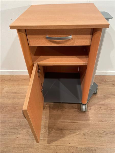 Dit kastje kunt u plaatsen naast een hooglaagbed of solitair gebruiken.  Het kastje heeft een in hoogte verstelbaar en kantelbaar tafelblad, ideaal voor het nuttigen van een maaltijd of een versnapering maar ook om de krant of een boek tel lezen.